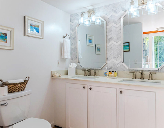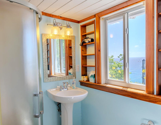 Fully air-conditioned and thoughtfully designed for comfort, Ballena Blue offers a warm and inviting atmosphere. Both main-level bedrooms are accessible from the great room, with the primary suite offering extra space and privacy. The wraparound deck provides ample seating to relax and take in the breathtaking vistas. A short set of stairs leads down to the third bedroom and bath on the lower level. The Villa features an all-paved drive from town with generous parking and turnaround.