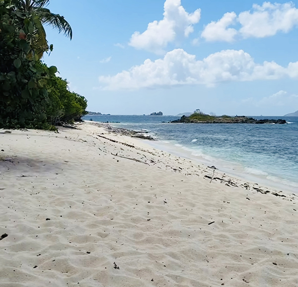 Denis Bay Beach on St. John in the U.S. Virgin Islands is a secluded beach known for its white sand and unobstructed view of the British Virgin Islands. The beach is known for its tranquil atmosphere and is a great place for a quiet beach getaway and you just may be the only ones there!  Located between Hawksnest and Jumbie Beach, it’s often less crowded than its more popular neighbors. The water can be rough in a north swell, but it’s a great spot for those seeking peace and privacy. While the land above the high-water mark is privately owned, the beach itself is public and can be accessed from the water. Snorkeling along the rocky outcroppings is a popular activity, and some diving is also possible.