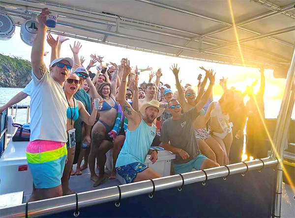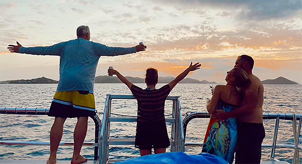 This incredible Group Adventure includes two Snorkeling stops in the playground of the Virgin Islands National Park around Saint John.  You will get to enjoy world class snorkeling witnessing a wonderland of tropical fish, sea turtles, sting rays, and more.  After snorkeling, the Group will head over to Great Saint James Island where the world famous Pizza Pi VI is located and enjoy fresh baked New York Style Pizza which is included in the cost of the trip.   The pizza is so delicious!!  And get ready to enjoy a well-stocked Open Bar including tropical Rum Punch, Painkillers, Sodas and Water for your refreshment.  After pizza, you will cruise through the islands around Saint Thomas and Saint John while the Captain tells stories about local history and culture, and the First Mate tends the Open Bar.  And sometimes the music gets everyone dancing.  Finally, as you head back to port you will experience the stunning Sunset.  What a day!