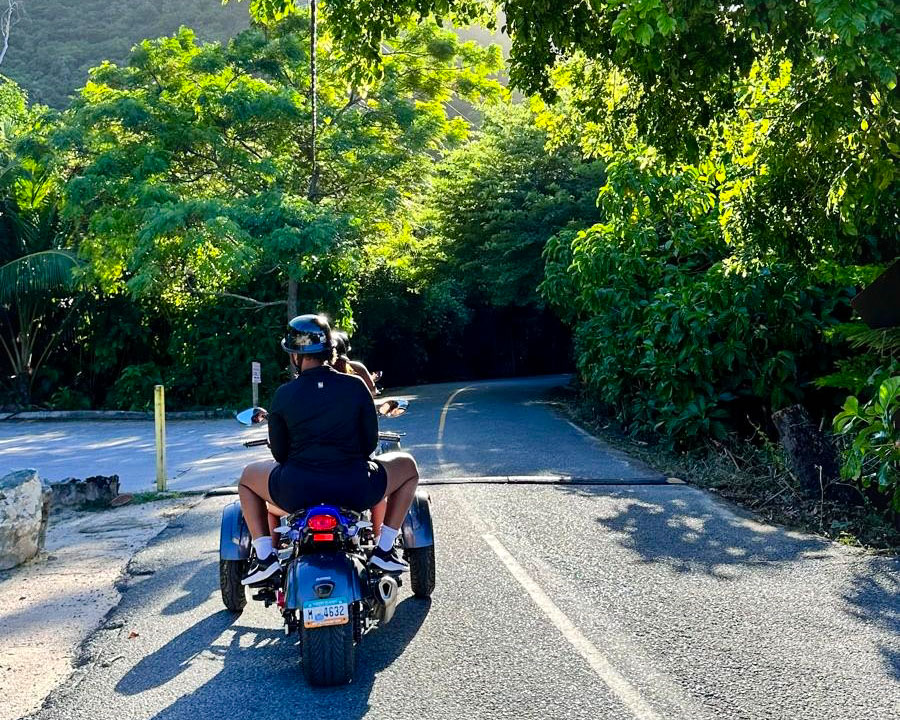 As the sun begins to dip below the horizon, watch the sky explode into brilliant shades of gold, pink, and violet. Few moments are as unforgettable as experiencing sunset in the Virgin Islands — and seeing it from a trike adds an extra layer of excitement, freedom, and island adventure as you cruise to scenic lookouts and coastal views.