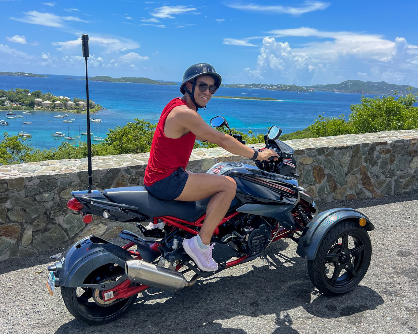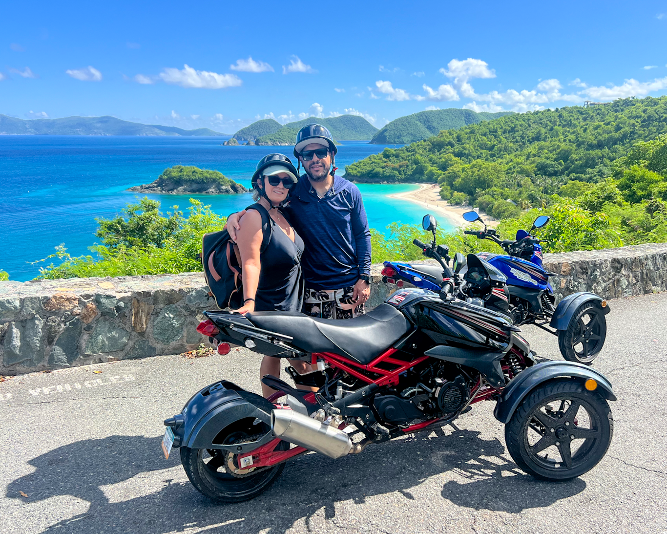 A St. John Trike Tour offers a fun, open-air way to explore the island on 3-wheeled vehicles (trikes), cruising past stunning North Shore beaches like Caneel Bay, Trunk Bay, and Maho Bay with stops for swimming, photos, and exploring historical sites like Annaberg Ruins, guided or self-guided, providing freedom and amazing coastal views.   Below are stops along the way.