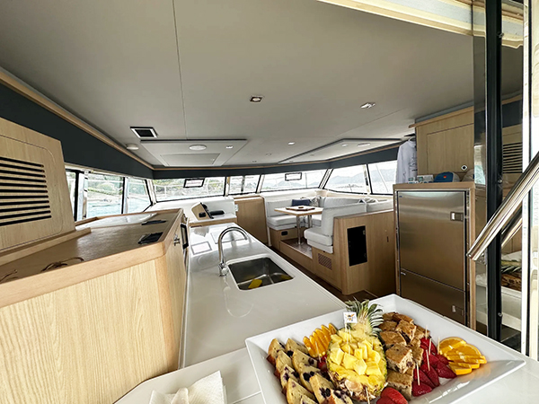 Relax on the spacious flybridge, basking in the sun or chilling in the shade. And for those special occasions, elevate your experience with Vueve Clicquot Champagne for an additional fee. If you are interested in a catered meal on board, just let us know and we will make all the arrangements for an additional fee.